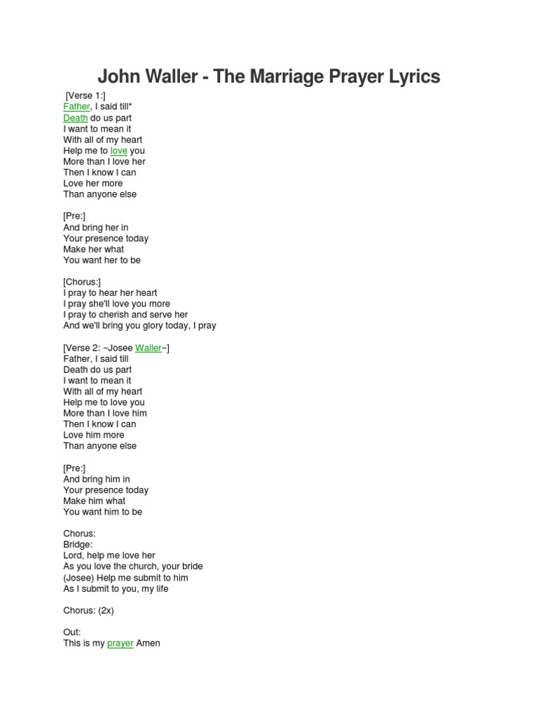 My interpretationagain for madonna, till death do us part is a sad concerto confession a la ciccone because she's sad about love. The term till death do us part actually refers to emotional death. The phrase may also refer to: ''in sickness and in health, to love and to cherish, till death us do part': ''in sickness and in health, to love and to cherish, till death us do part': (v) separate, part, split (go one's own way; 'til death do us part. when i said those words at the end of our marriage vows, i wasn't thinking about death. 'till death do us part' is a phrase that does not appear in any of the plays or poems of shakespeare, although we probably feel that it should. Other men and women who wish to marry can be married by a local official. I was thinking about living and loving as long as i could. And i pledge to you my faithfulness. In this phrase, death does not need to mean the end of physical life. Meaning of til death do us part.